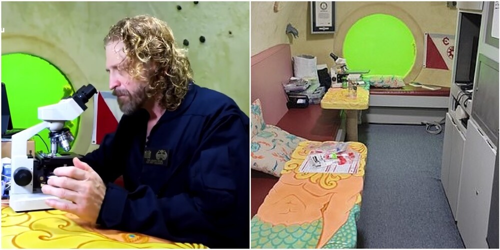 For 93 days, Dituri remained at the same weight as descended into the capsule, and at the same time became slimmer. According to him, 4-5 days in he trains for a week - from the inventory he has only fitness rubber bands. The professor's underwater house is small, its area is 30.5 square meters. meters. There is a working area, a kitchen, a bathroom, two bedrooms and window overlooking the ocean. He also has a TV, coffee maker and microwave.