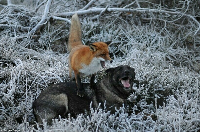 Tinni is the dog of Norwegian photographer Torgeir Berge (Torgeir Berge), their house stands on the outskirts of the forest, where Thorgeir likes to walk with his pet. During one of these walks, a fox cub joined them. He started playing with Tinny and then followed the dog. Then Berge took a few pictures for the first time, not even suspecting that this day will be the beginning of a great friendship.