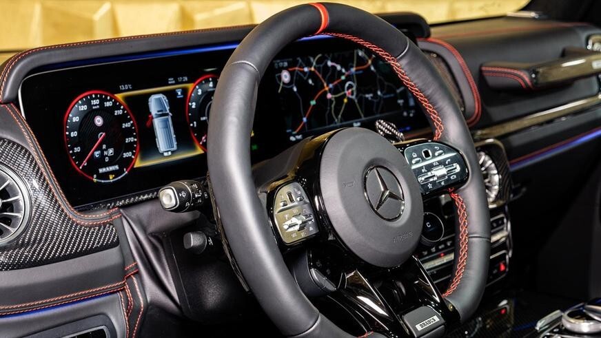 The output of the upgraded motor is 900 hp. With. and 1250 Nm. (Strictly speaking, the engine is capable of delivering up to 1500 Nm, but thrust artificially limited due to the design of the transmission.) To achieve this succeeded, in particular, by increasing the working volume from 6.0 to 6.3 liters and the use of a high-performance boost system. Up to 100 km/h Brabus G V12 900 accelerates in 3.8 seconds - it's faster than the standard Porsche 911. The maximum speed of such an SUV is 280 km/h