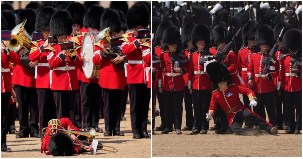At the rehearsal of the military parade, three British guards fainted (4 photos + 1 video)