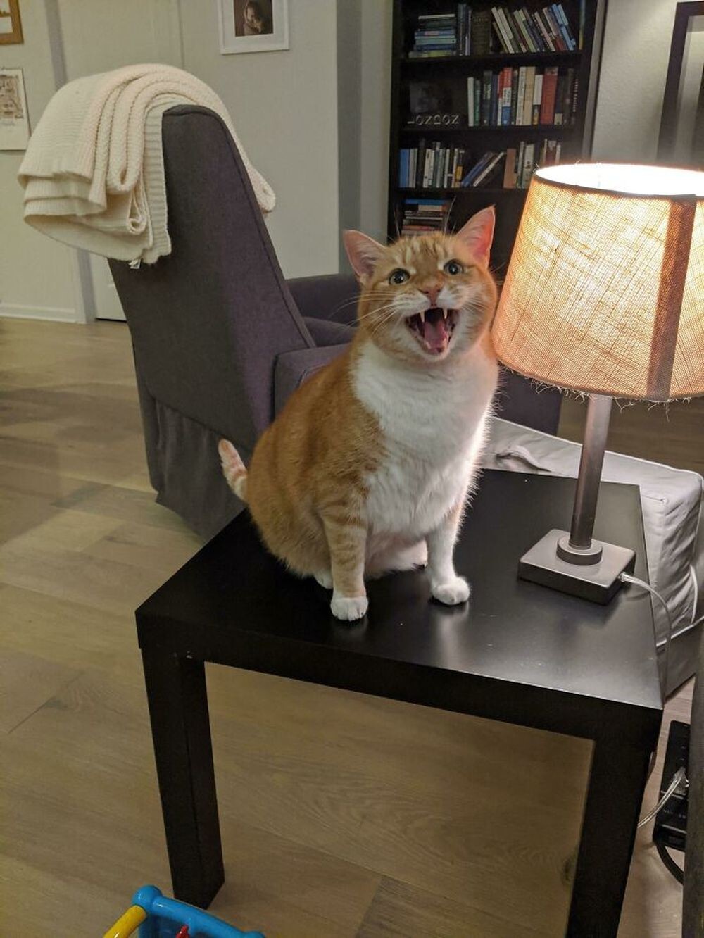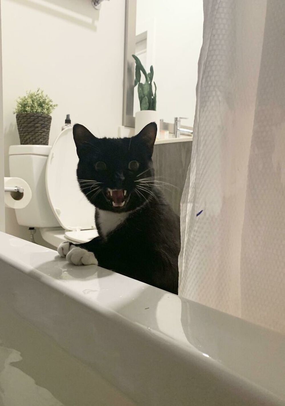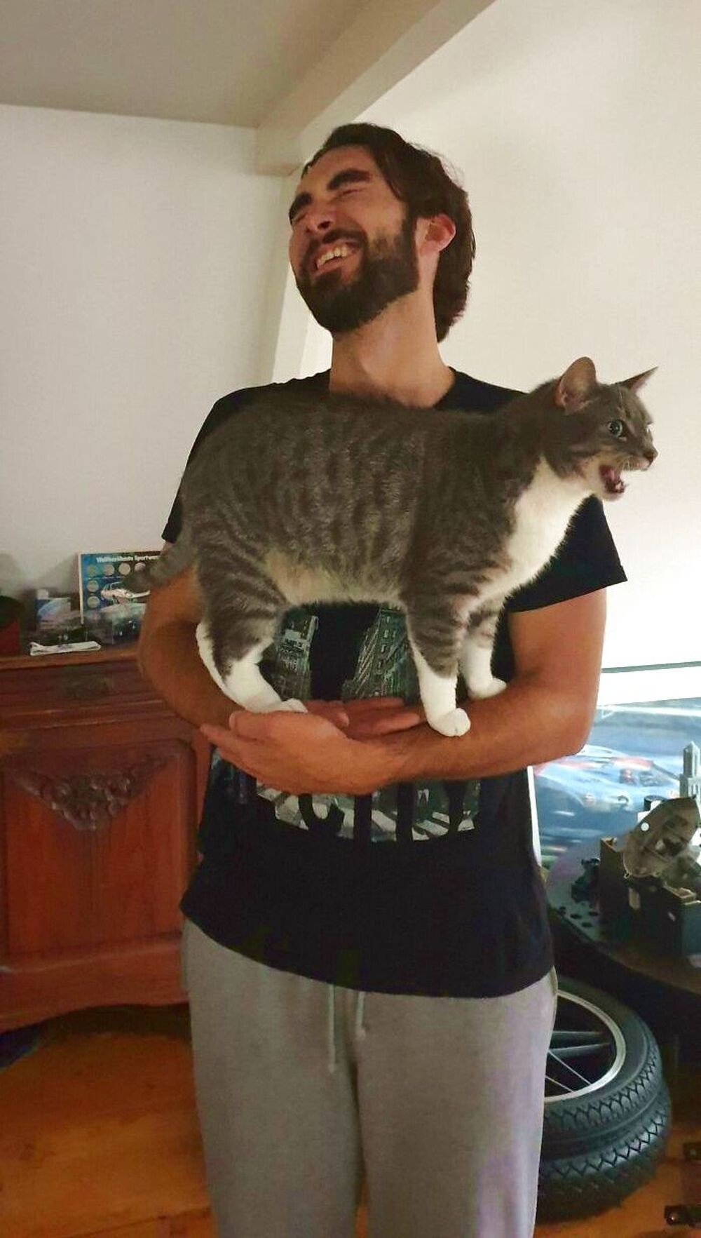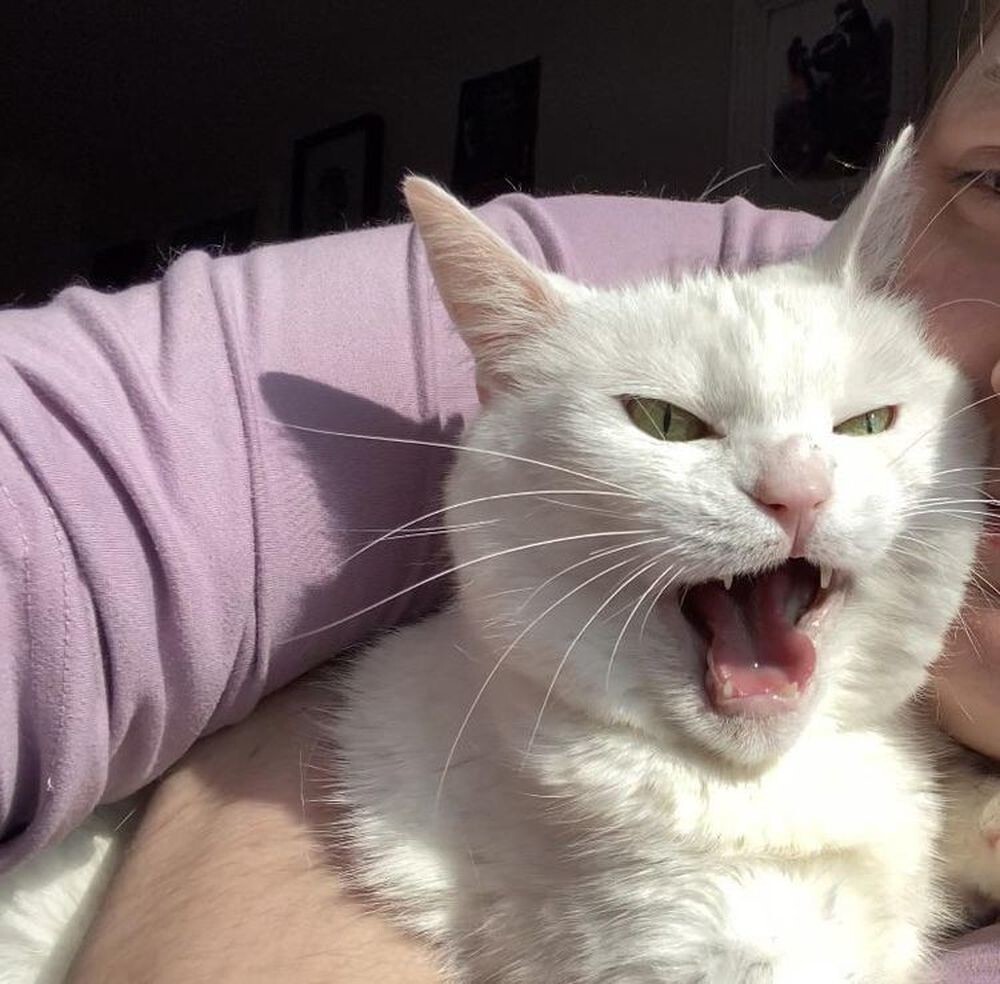 “My cat loves to scream non-stop. My boyfriend is trying to get used to it."