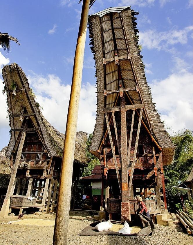 According to the myth of the Toraja people, the first tongkonan was built god in heaven. According to an alternative legend, the first Toraja who sailed to Sulawesi from the north, suffered a storm, and damaged boats used as roofs for their houses. Allegedly from here and such an amazing form of dwellings. Tongkonans are traditionally folded without a single nail.