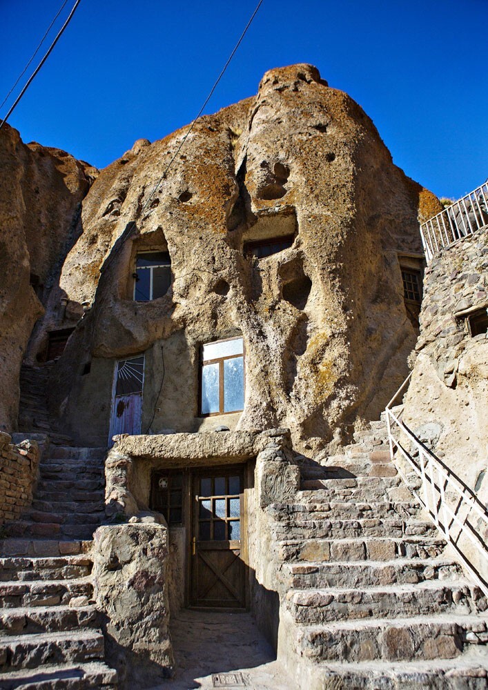 Bizarre streamlined forms of rock houses in the village Kandovan in northwestern Iran might be the envy of Gaudí, but they created by ordinary people, simply carved into volcanic rock. Every the house is in a separate cone-shaped rock. The cones themselves formed due to the frequent eruptions of the Sehend volcano in antiquity.