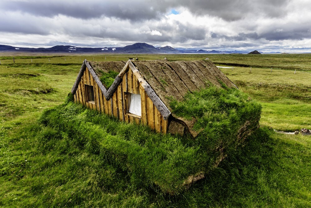 Roofs overgrown with green grass are a picturesque feature Scandinavian villages. However, picturesqueness is not the main thing here: turf, sealing wooden frame (usually birch bark) - excellent cold protection. In Iceland, until the middle of the 20th century, no houses were built from turf. only the roofs, but also the walls of houses with stone foundations.
