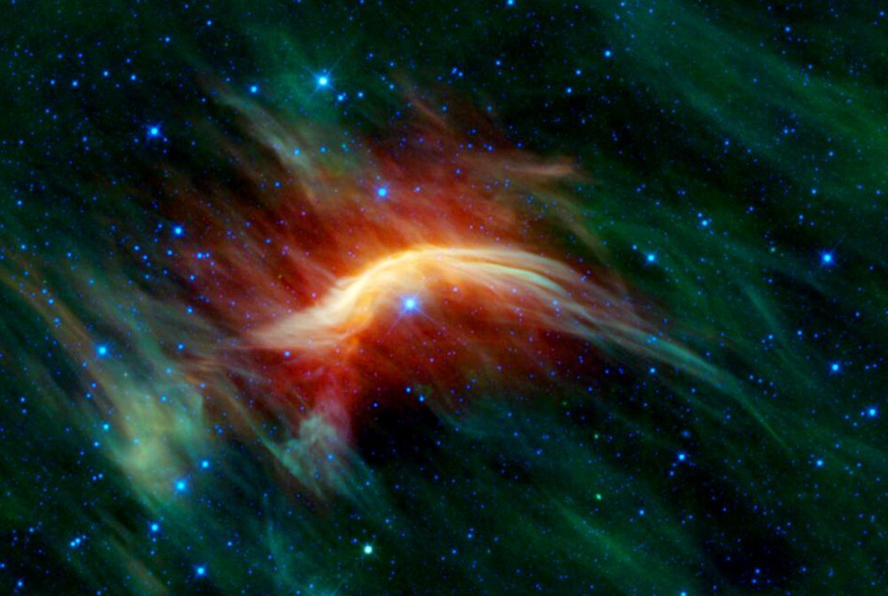 A red "runaway" star from the star system in the Flame Star Nebula appears to be on fire.