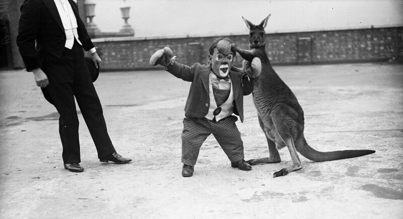 When, to whom and where did this idea first come to mind - unknown. Perhaps it was in Australia itself, where there are many wild kangaroo. But one of the first mentions of a fight between an animal and a man, dated 1890 refers to Philadelphia. Comic battles passed between the unknown inhabitant of the zoo and his attendants.
