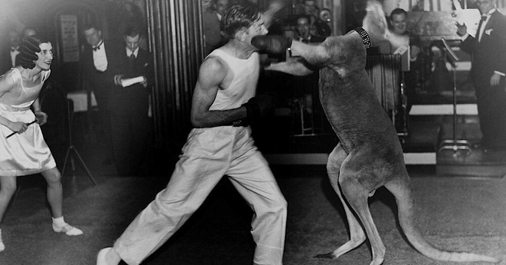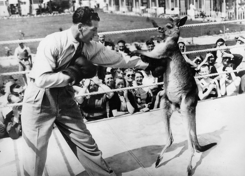 Come now, a similar idea to someone's head, animal rights activists, Certainly not torn to shreds. But they will be dragged through the courts. A little more than a hundred years ago, fights between people and kangaroos were quite common and very popular form of entertainment.