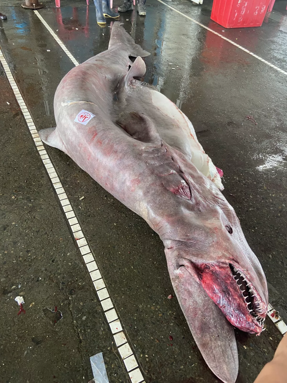 Fishermen caught a rare fish off the northeast coast of Taiwan a brownie shark, or a goblin shark, weighing 800 kilograms. She was pregnant with six cubs, and became the largest shark ever caught in these waters.
