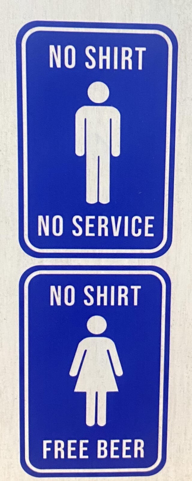 8. Without a T-shirt, guys are not served, and girls are poured for free