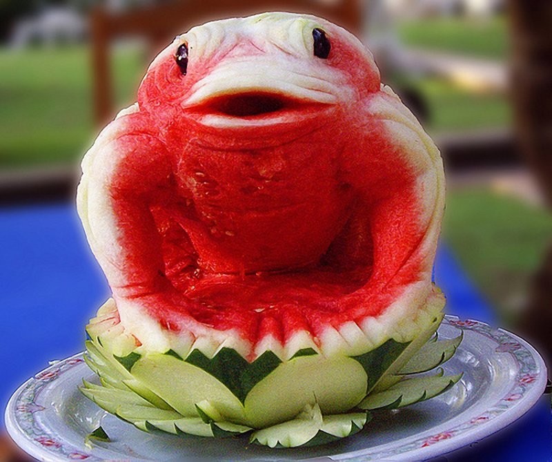 This technique is good because it develops fine motor skills (and along with it, and cognitive functions), improves artistic taste, helps to spend free time and decorate the table. And for some carving - this is the name of the art of carving figures from vegetables and fruit is also a way to throw out the negative.