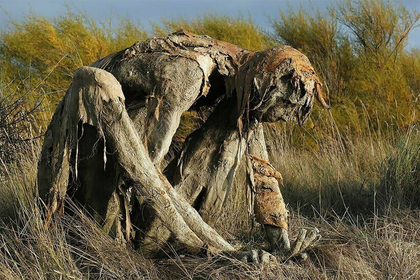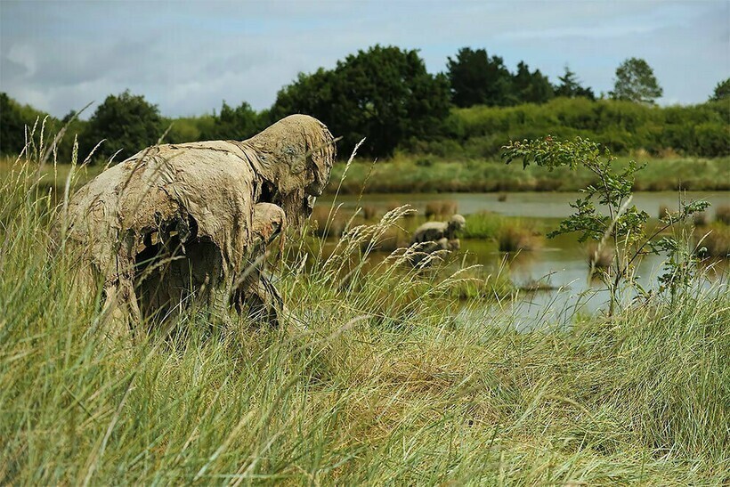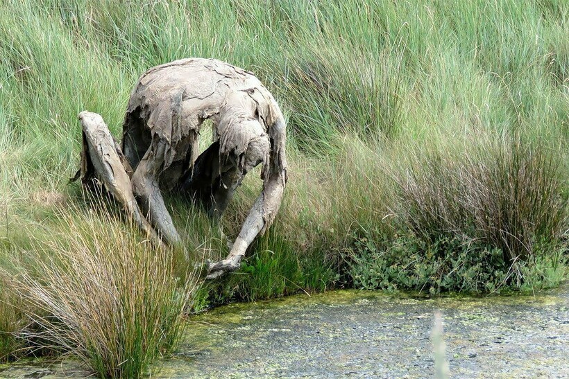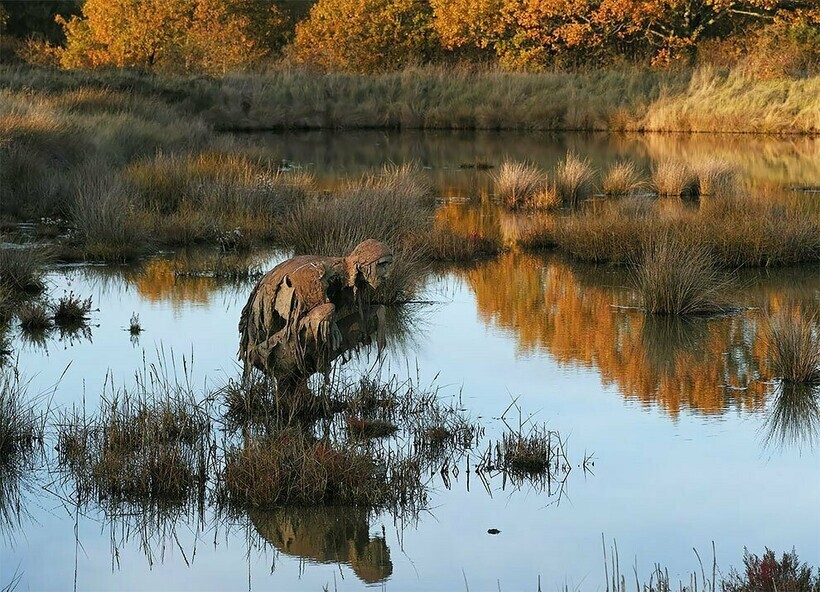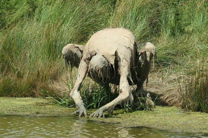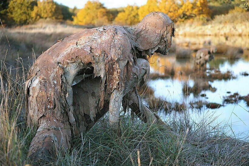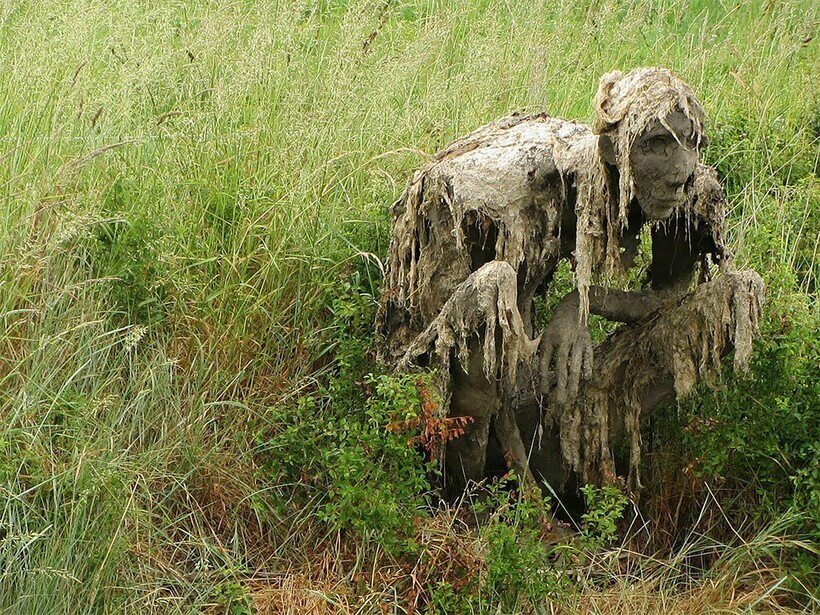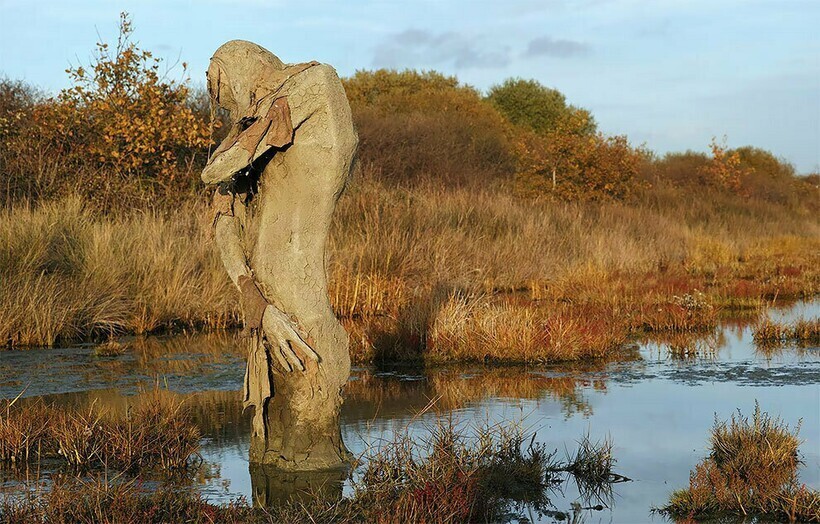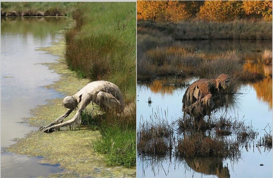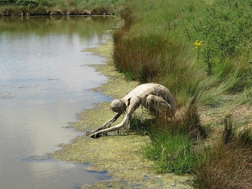 This artistic direction seems to establish directly relationship between man and nature. It's this intense dialogue. sculptor Sophie Prestigiacomo has been leading for many years: she creates incredible statues inscribed in the surrounding landscape. Most her famous works are swamp monsters, which appeared several times in the Marais de Séné nature reserve in France.