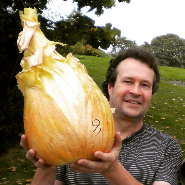 Gardener Tony Glover set a record by growing the heaviest onion weighing 8.5 kilograms