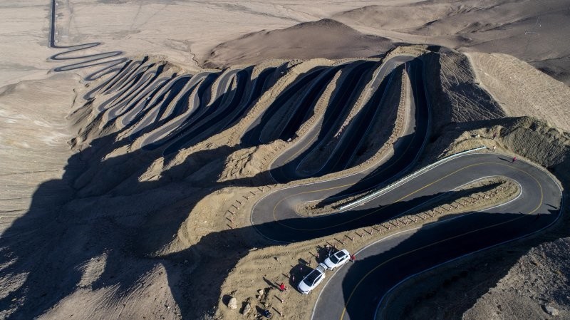 The Panlong Road is a 75 km stretch on a steep slope. It was opened in 2019 for local farmers who call it the "sky road". On the way the driver is waiting for more than 200 turns. Its surreal design, reaching an altitude of 4200 m above sea level, attracts tourists and motorists.