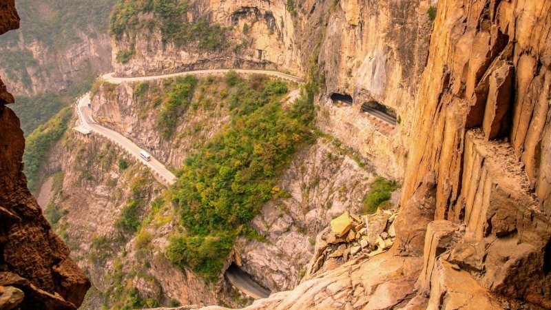 The Guoliang Road Tunnel is carved into the Taihang Mountains Chinese province of Henan. The road was built by the locals and used for both pedestrians and vehicles, linking the village Guoliang with the outside world.