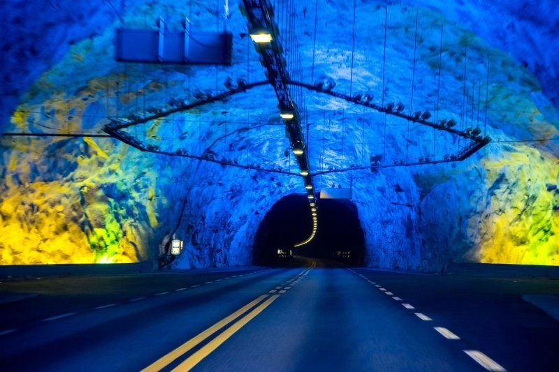 In front of you is the longest tunnel in the world with a length of 24.5 km. The Lerdal Tunnel is located in Norway and connects regions Aurland and Lerdal. It also provides connections between Oslo and Bergen.