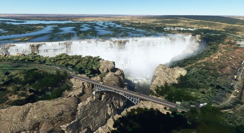 These photos show the A8 road next to the waterfall Victoria, one of the seven natural wonders of the world. Motorway passes from the city of Bulawayo to the famous waterfall that forms the border between Zimbabwe and Zambia.