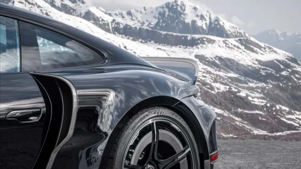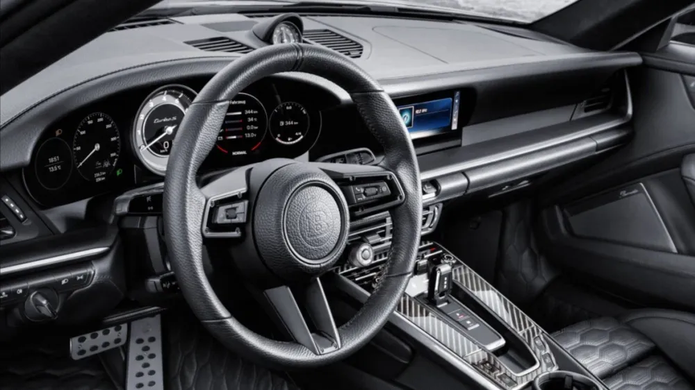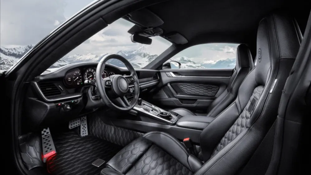 3.8-liter boxer "six" is supplemented by custom pressurization system, thanks to which it develops 900 hp. and 1000 Nm. This enough to accelerate to 100 km/ h in 2.5 seconds and gain 200 km/h in 7.2 seconds at a top speed of 340 km/h. Motor accompanied by an Inconel exhaust system with adjustable valves.