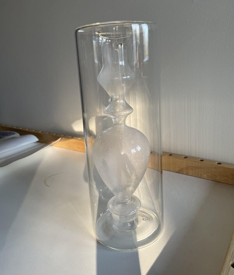 8. Glass object, hollow, with a hole through, so it is not a vase