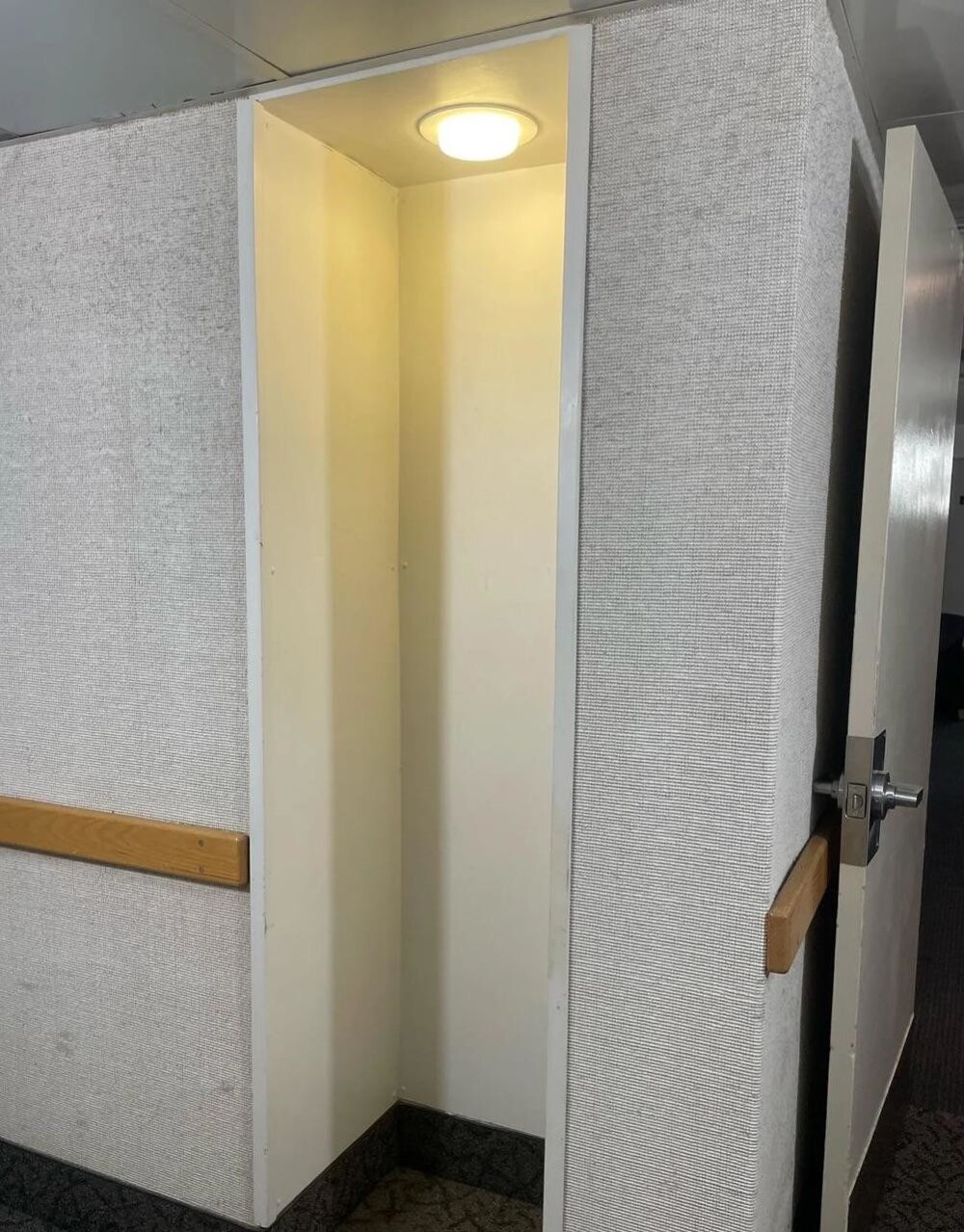 It looks like a telephone booth. At some point, it probably contained a telephone.
