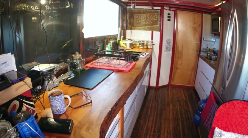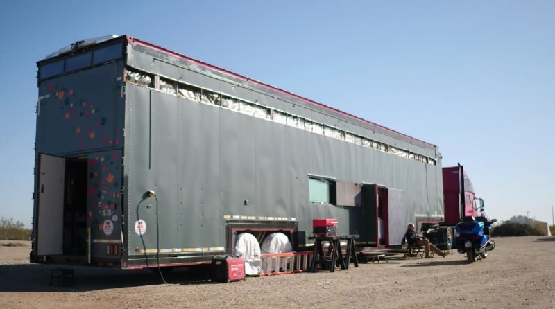 The two-story colossus was called "Nomadic Monster", and in it fitted kitchen, cinema, living room, bedroom, library, bath, balcony, garage and even a sewing workshop.