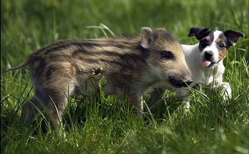 A little wild pig, abandoned by his mother, roamed the countryside in Germany. It was there that the Dalhouse family and their dog Candy. People could not pass by and took a small pig, naming her Manny. Terrier and pig all day long play, running in chasing and hiding from each other. Manny to become closer to your friend, even taughtlet out something like a bark.