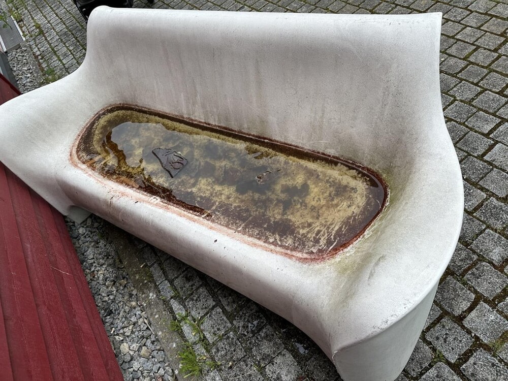 7. Benches with water beckon to sit down