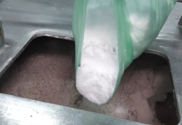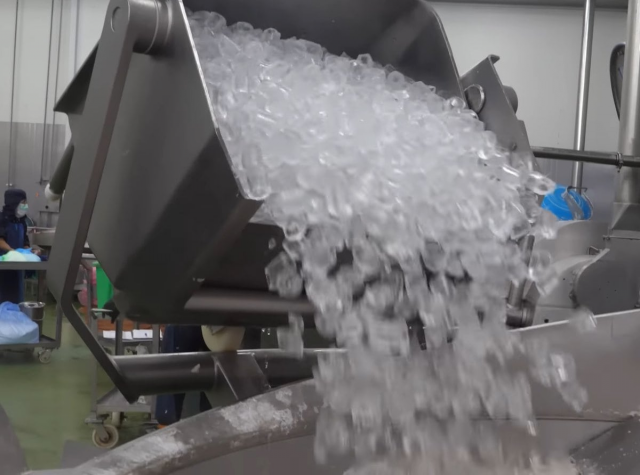 Sixth stage - technologists add ice to increase the elasticity of raw materials
