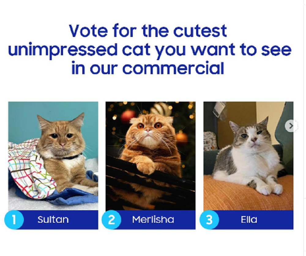 On Samsung's Instagram account, users vote for the cutest cat. Company managers said that the winner will star in the new Samsung Neo QLED 8K commercial.
