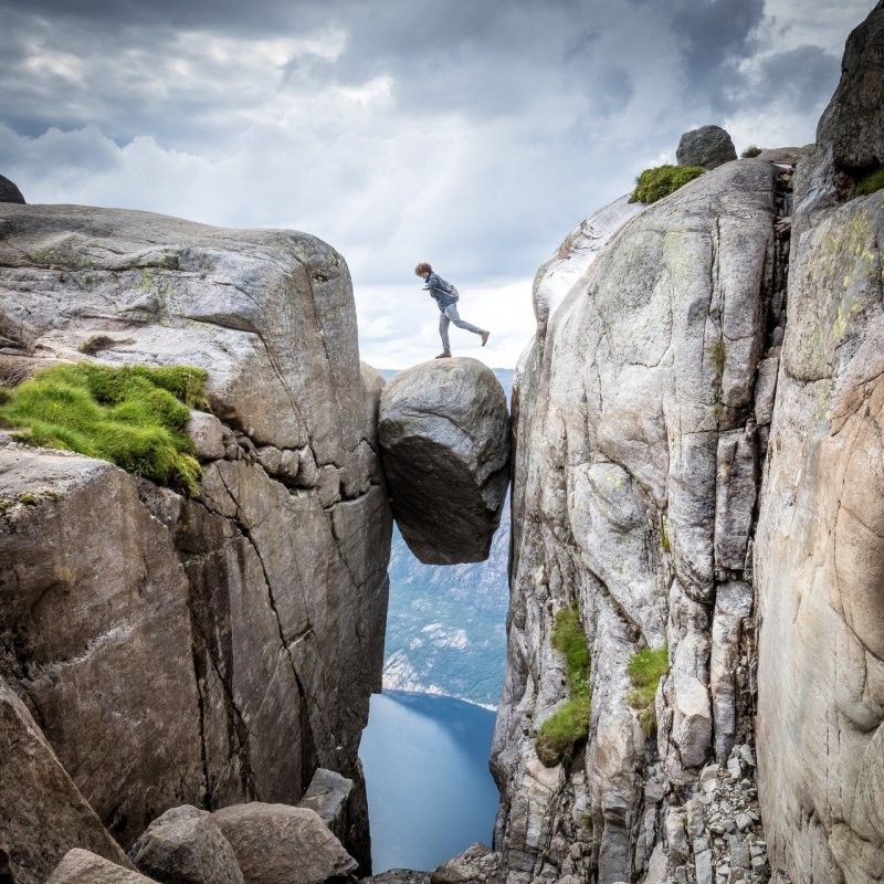 However, years add up to centuries, and the boulder is not going to fall. And although not a single person fell off Kjeragbolten, for epic photo you need to have some preparation, because the wind is at a height almost 1000 meters is very even felt.
