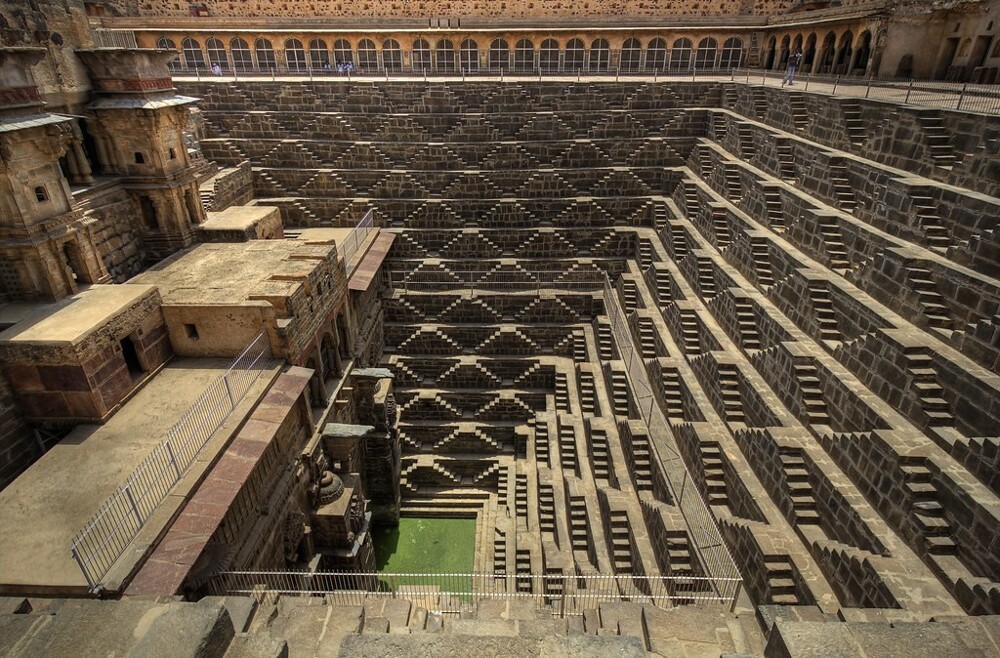 Its depth is more than 30 meters. 13 tiers, 3500 steps. The building was completed in the 15th century.