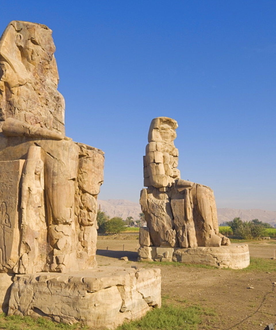 49. Statues of Pharaoh Amenhotep III on the west bank of the Nile, Luxor, Egypt