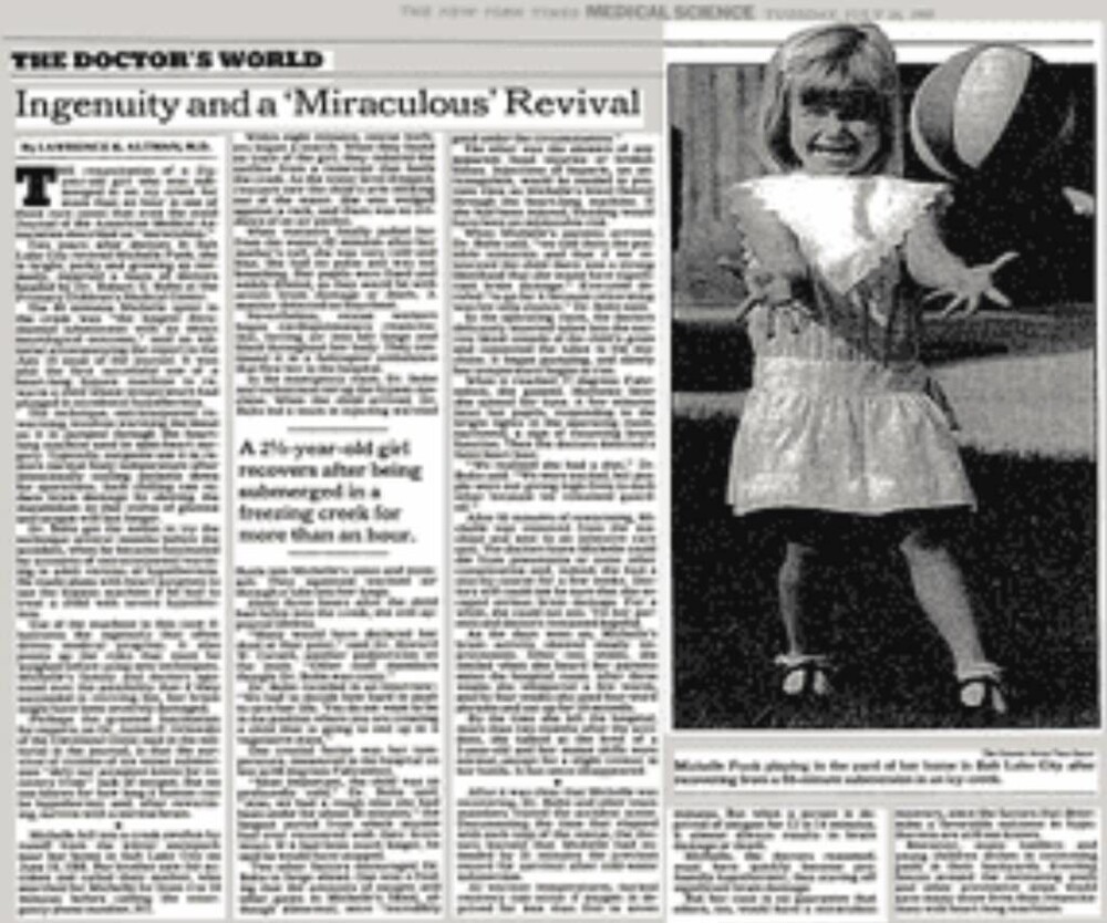 Michelle's case was a record one (66 minutes underwater) and demonstrated that the human body is amazing and, despite advances in medicine, is still full of surprises and mysteries.