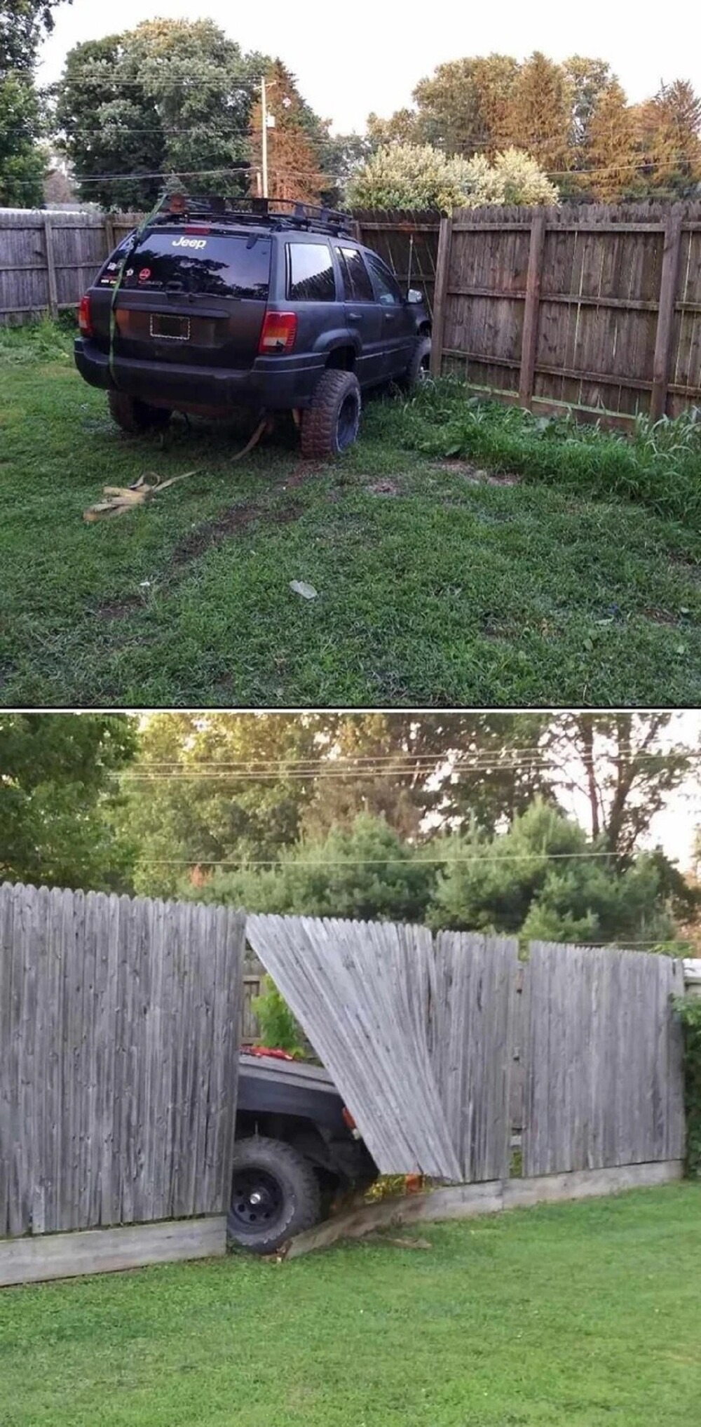 1. "My 15-year-old son decided to move his sister's jeep, but forgot that he has no brakes. This is what happened to my fence"