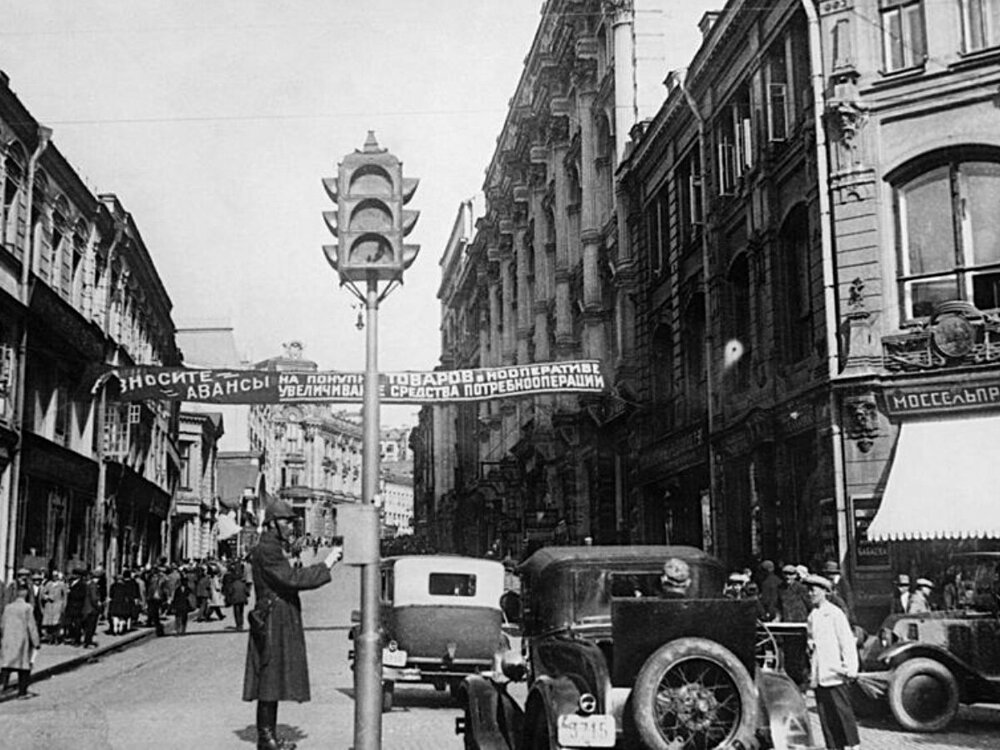 In the USSR, the first traffic light appeared at the very end of 1930. - in Moscow, at the corner of Petrovka and Kuznetsky Most streets, and after a couple of years, another traffic light appeared nearby - at the corner with Neglinnaya. First Soviet traffic lights, like American ones, worked in the "manual" mode. management".