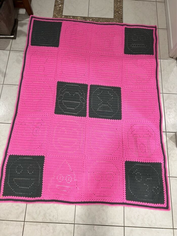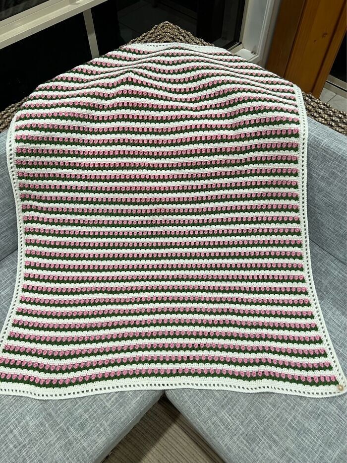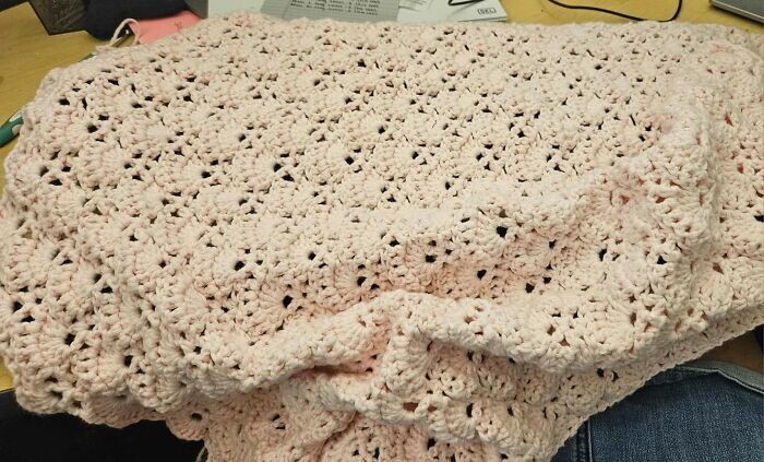 2. “I knitted this bedspread for the daughter of a man who works with my husband.”