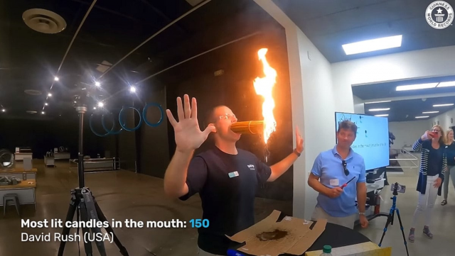 David Rush is able to hold 150 burning candles in his mouth at a time.