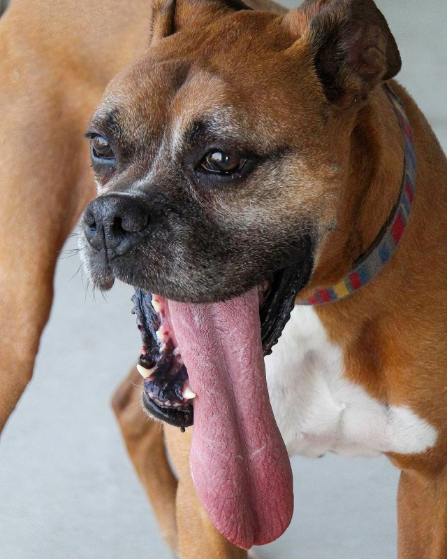 Boxer named Rocky is the owner of the longest tongue among dogs (13.88 cm).