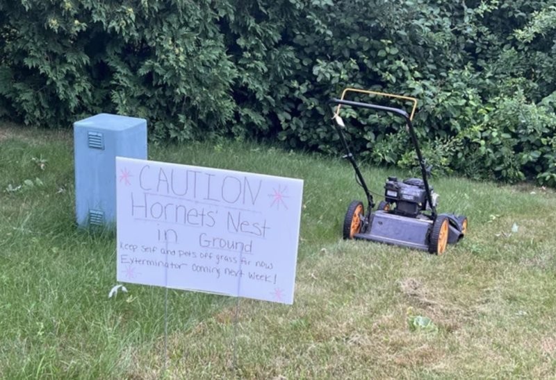 9. "Caution! Wasp's nest in the ground. Do not walk on the grass and do not let the pets. The exterminator will arrive next week."