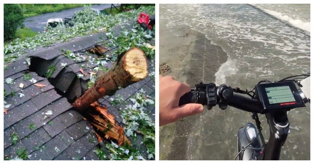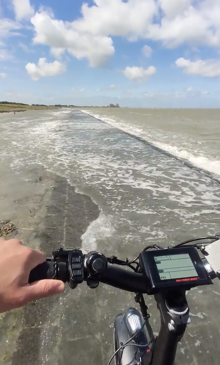 2. "There was a strong tide while I was cycling along the road by the sea"