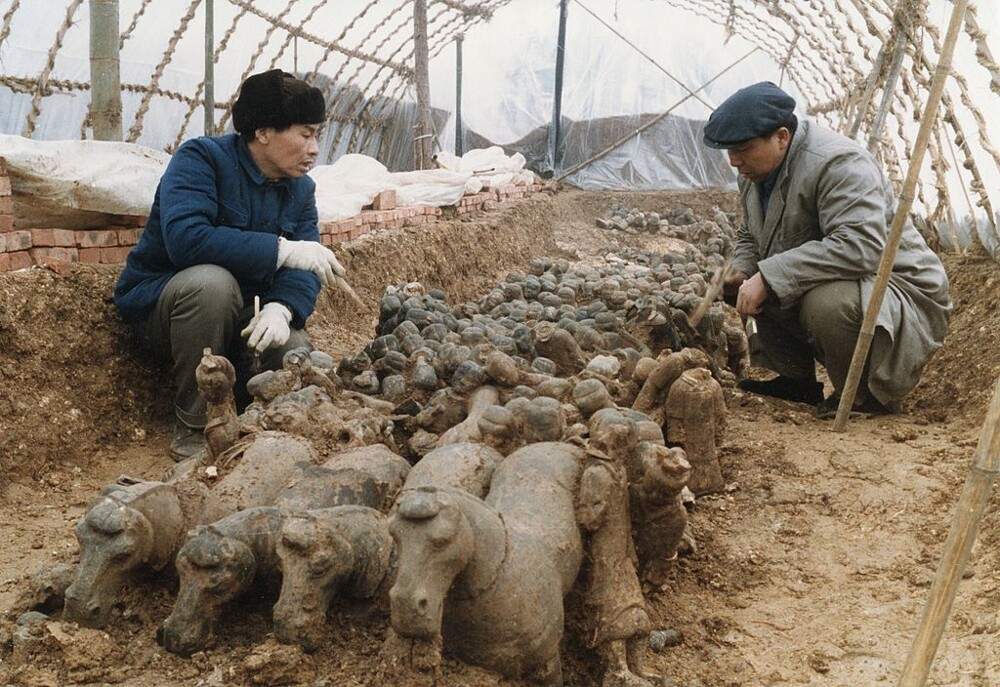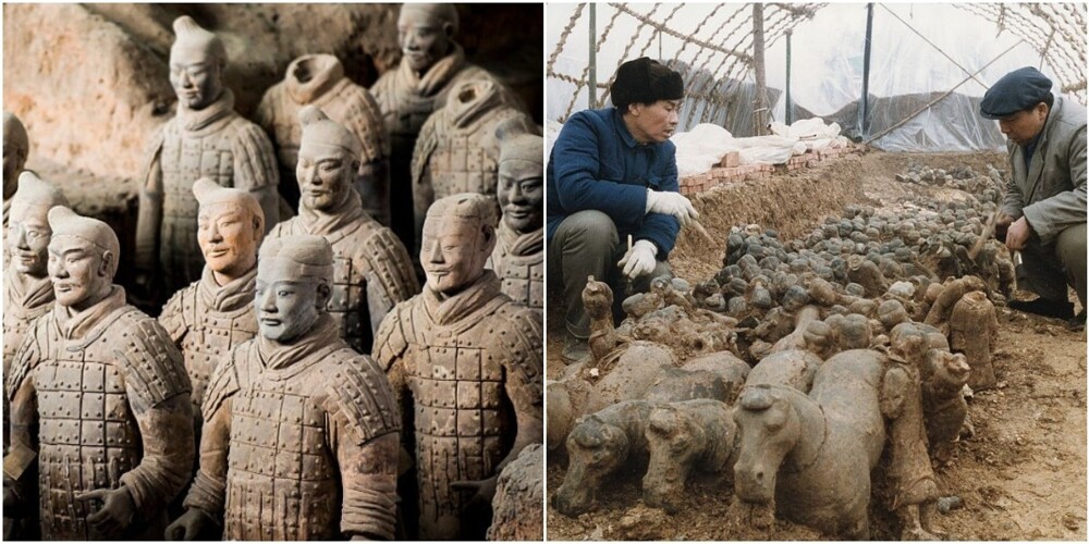 In 1974, a group of Chinese peasants began to dig a well in Xi'an in the midst of a drought. While digging, they suddenly stumbled upon earth of an unusual red hue - and continued to dig to find out what's there. They found bronze arrowheads and many heads in life size, made of terracotta, and other terracotta fragments. The find was first reported to archaeologist Zhao Kangmin, who immediately arrived at the scene with a colleague. By that time, it turned out that the farmers started selling some artifacts - so the archaeologist promptly delivered the remaining finds to the museum, where at that time have worked. The scientist tried for three days to assemble something from the fragments, and he succeeded - two terracotta warriors turned out.