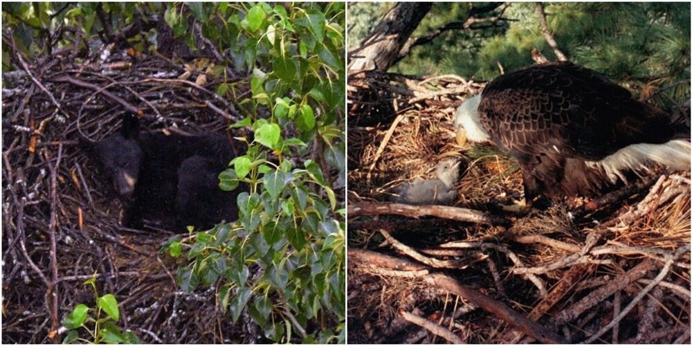 It is known that black bears (or baribals) sometimes use bald eagle nests in Alaska. According to the Fisheries Conservation Service economy and wildlife, unfortunately, such intrusions are usually the chicks and the eagles themselves suffer. Bears sometimes eat eagle eggs and chicks. According to experts, such cases are difficult to trace and prevent because they cannot provide continuous surveillance.