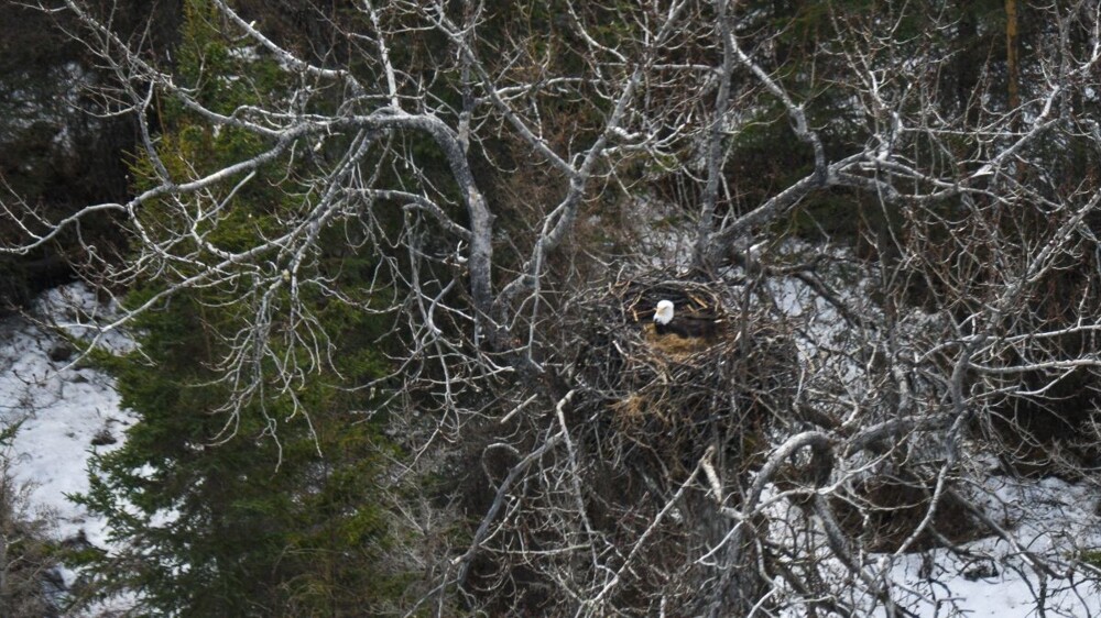 During a helicopter survey in May, researchers noticed a female bald eagle incubating an egg in a nest. Later it the nest was occupied by a black bear - but the egg remained untouched. At that time feathered parents flew restlessly near the nest, fearing for the egg, but couldn't do anything. Bald eagles are the largest birds of prey living in Alaska. Their wingspan reaches 2.3 meters. They also build the largest nests of all North American birds: diameter some nests can be 2.4 meters.