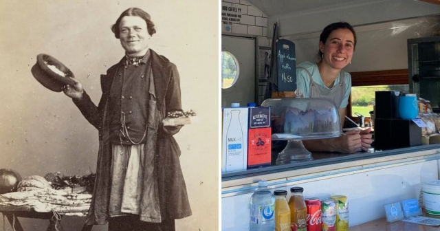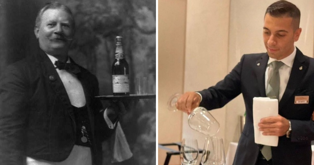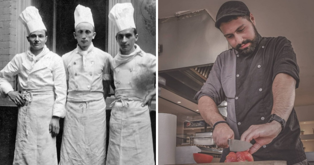 The 1920 photo shows Joe Thuillier (right) - Irish chef. In a modern photo - the chef of the Greek restaurant.