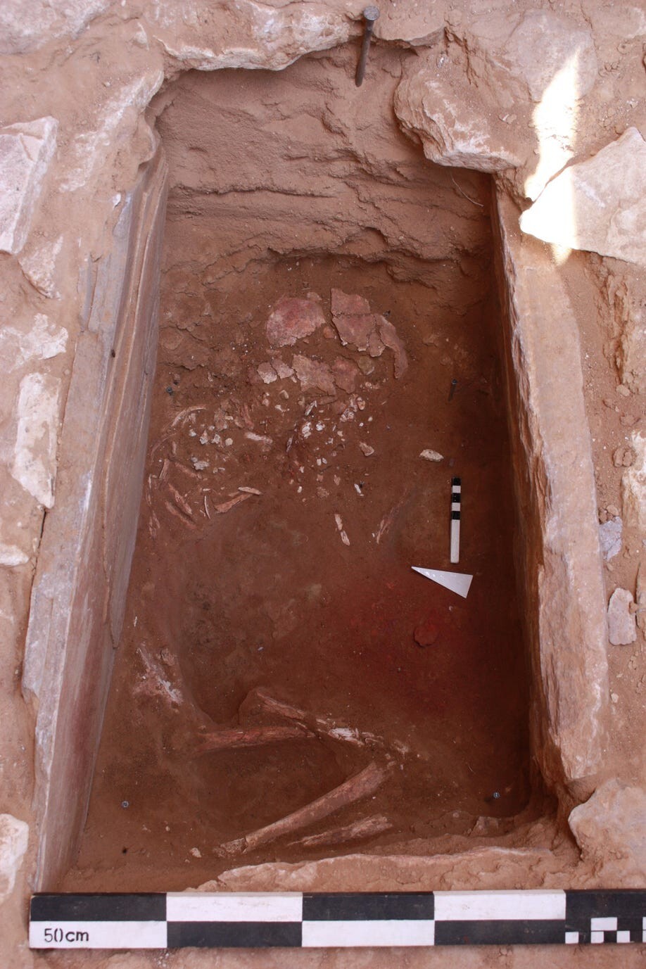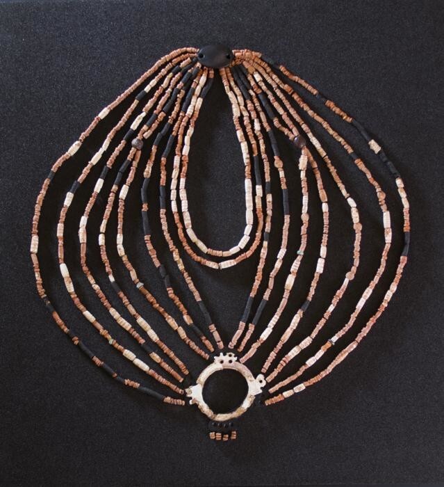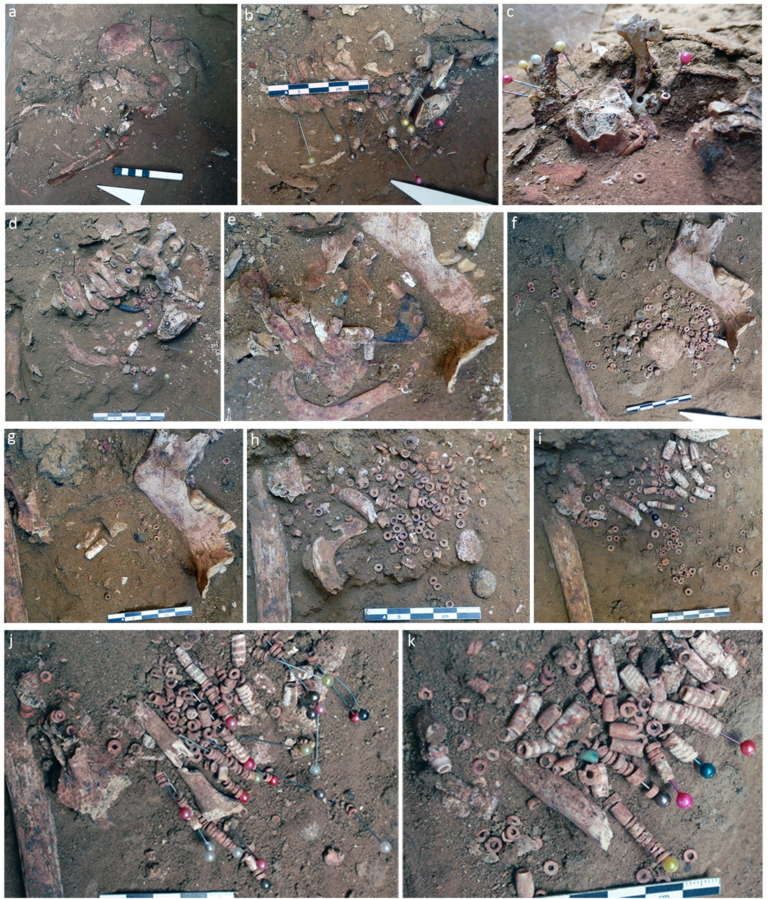 More than 2,500 beads were found in the grave, some of them made from calcite, some of turquoise, and some of hematite. Majority painted red. As the experts found out, the beads were located on the chest and neck of the child - they were carefully laid out in a certain shape, and a mother-of-pearl ring held them together. According to scientists, the beads were part of jewelry that was partially destroyed after the decomposition of the body. After after all the artifacts were removed from the grave, experts recreated an ancient necklace by assembling it bead by bead.