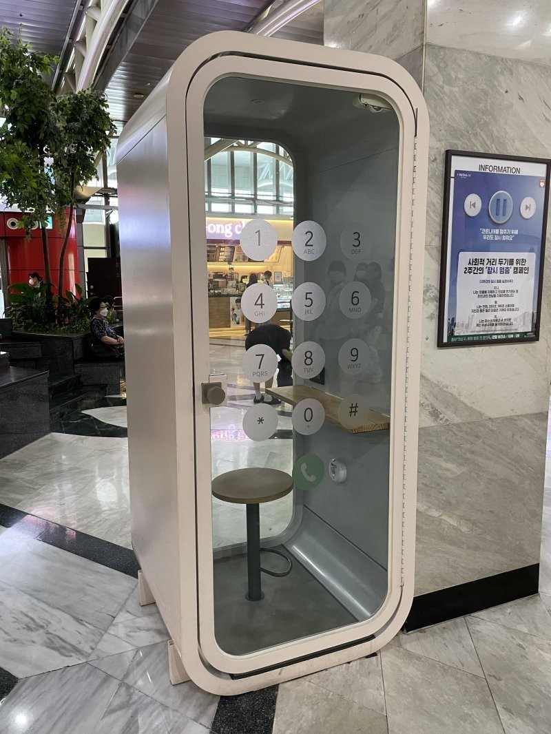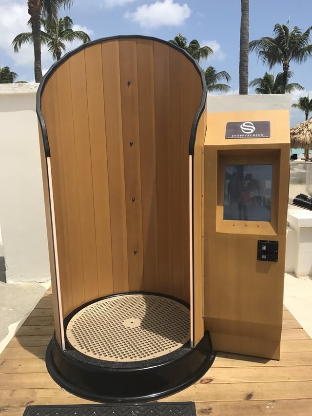 44. In Aruba, there is a machine that applies sunscreen cream. It rotates around you and evenly sprays the product on the body.