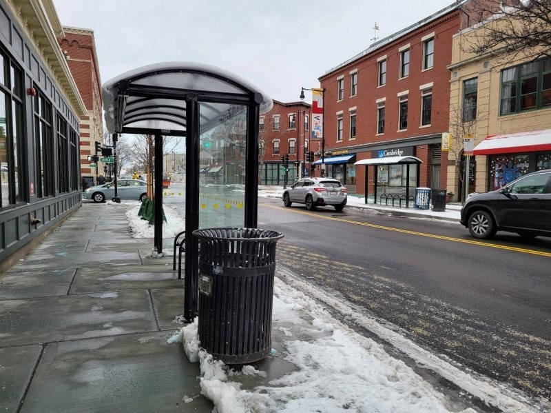 16. The bus stop is facing the other way to protect passengers from splashes and dirt.