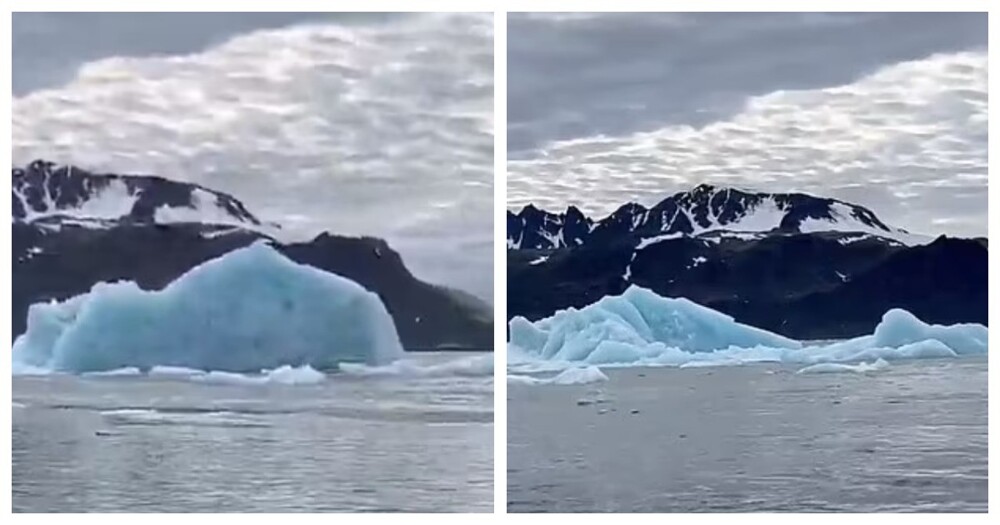 Iceberg cracked and turned over in front of tourists (5 photos + 1 video)
