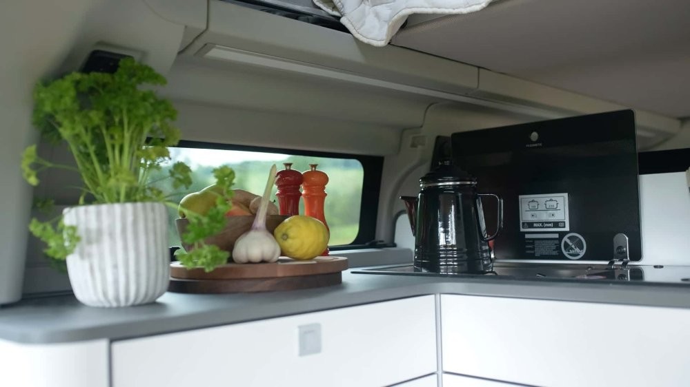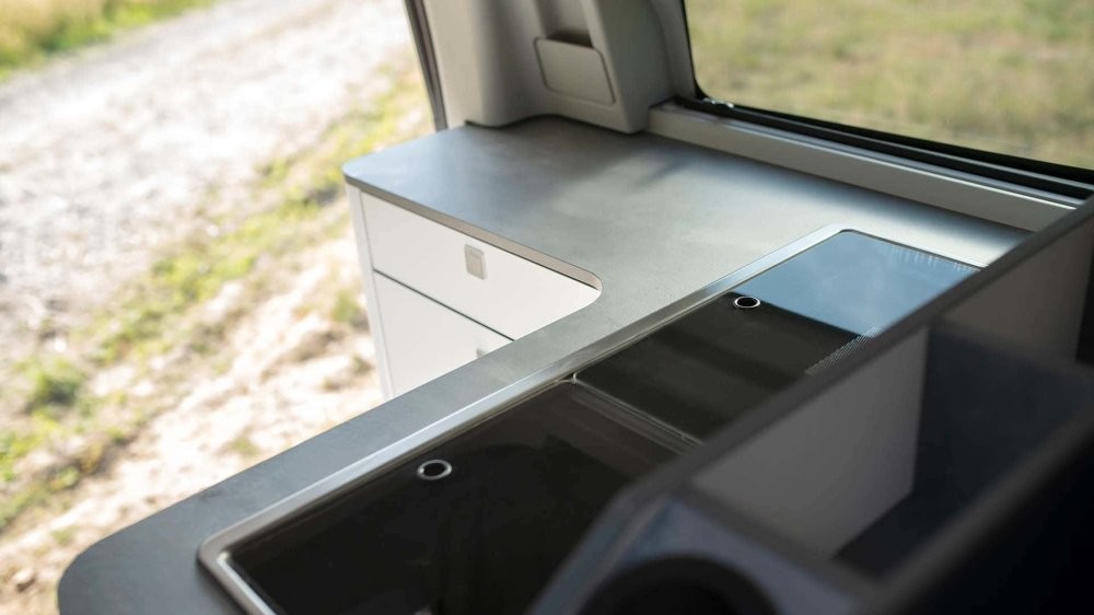 Active participation in the design of the interior of the camper hosted by specialists in such transport from Westfalia. Their through the efforts of the Nugget received a multi-zone salon with several separate spaces - for example, a dining area, a kitchen and a space for sleep.
