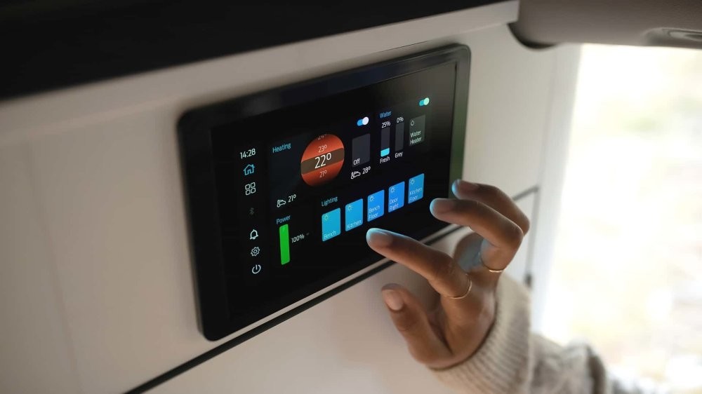 You can control camper systems both from the built-in 7-inch display, and through the occupants' smartphones. Available climate, interior lighting and multimedia settings with a 13-inch screen. In addition, on smartphones, you can track the level of charge hybrid power plant batteries.