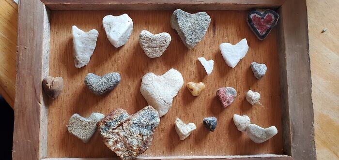 1. “I always look for heart-shaped stones wherever I go. I have many more, I just need to make a new display case for them.”